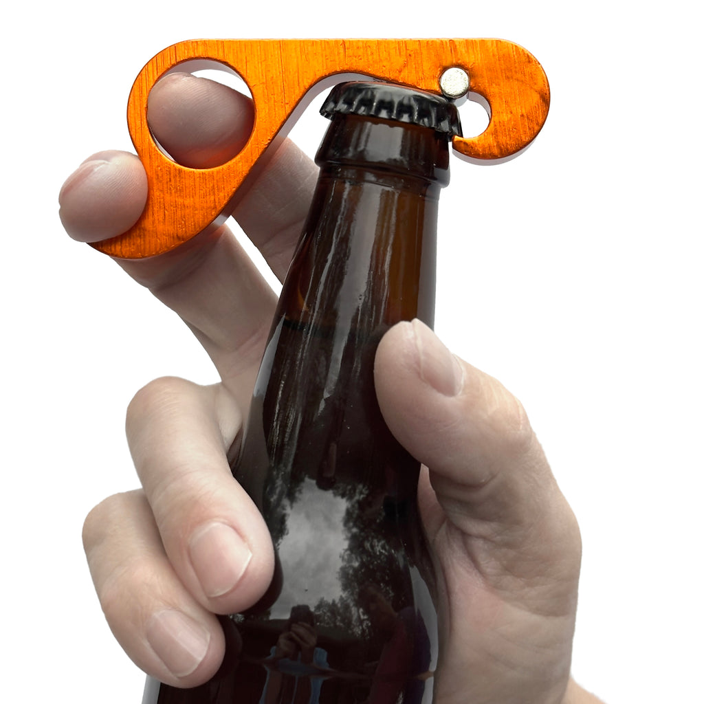 The GrabOpener's award winning approach to ergonomics is a little unusual...and a lot of fun!  All it takes is a natural one-handed grab to pop open the cap of your favorite bottled beverage. This extruded aluminum GrabOpener has a strong neodymium magnet to catch the cap and stow it to the fridge.